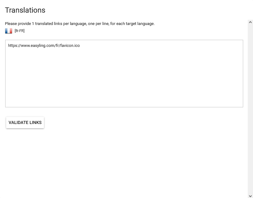 Step three is for adding the translated URLs. Make sure that they are in the same order as the source resources were in the previous step.
