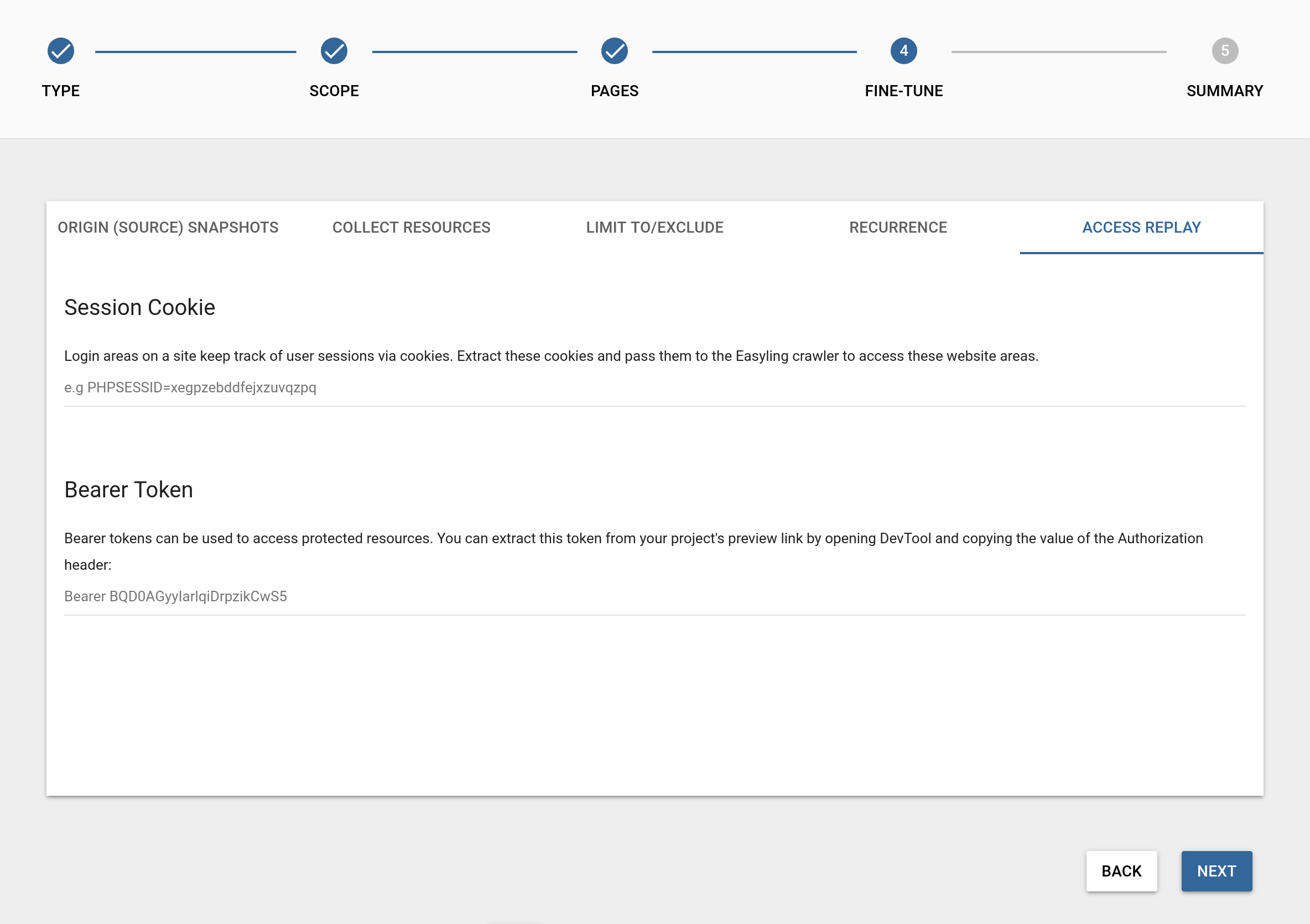 No, not the scary kind of bears. These tokens are used for authentication on systems using OAuth 2.0. It’s a string that acts as an authentication of the request and is sent in an HTTP Authorization header. It works very similar to passing cookies to the crawler. With this feature, you can crawl pages protected by login via OAuth 2.0. Just log in, refresh the site, take the value of the Authorization header and enter it into the Bearer Token field on the Access replay tab of step 4 of the Crawl Wizard. The crawler will supply this token alongside every request it sends.