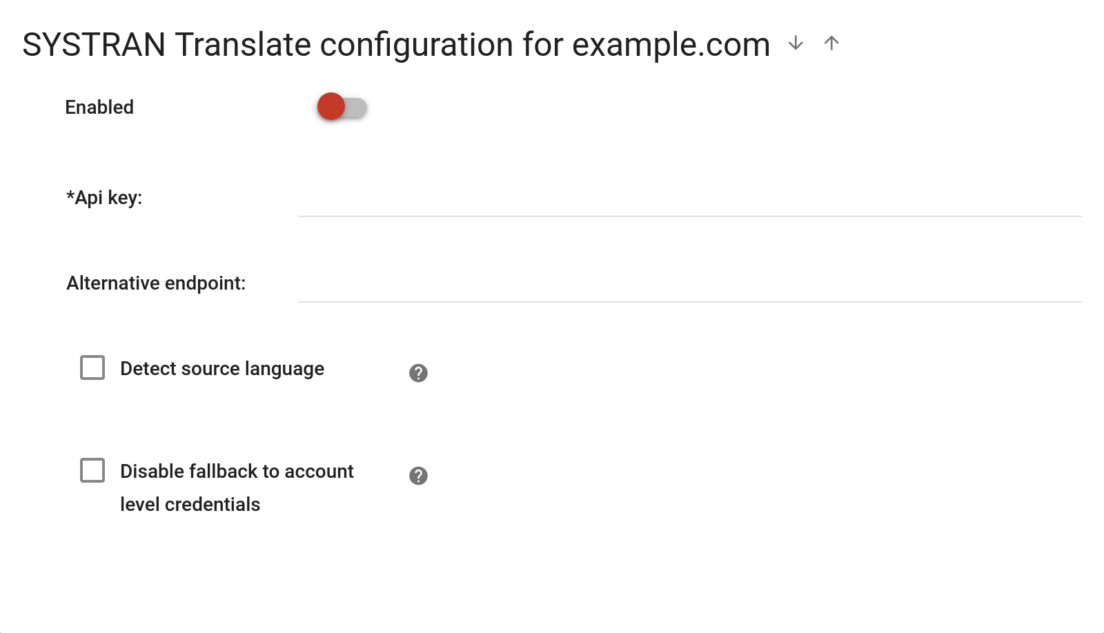 Pour commencer, il suffit d'entrer votre clé API sur le tableau de bord 2.0 et d'activer le moteur. Avec cela en place, vous pouvez utiliser Systran comme n'importe quel autre moteur, à la fois pour les suggestions dans le Workbench et la traduction de pages par pré-traduction.