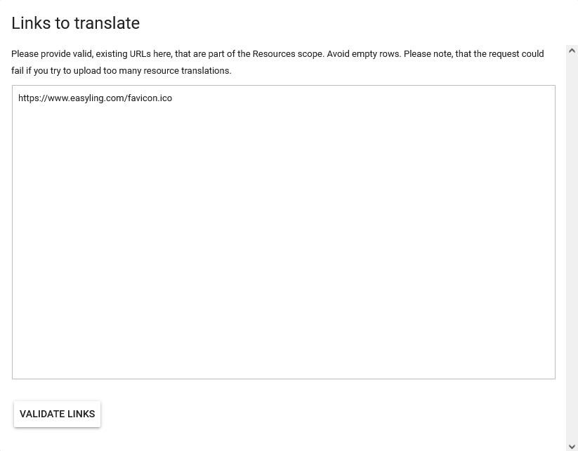 Step three is for adding the translated URLs. Make sure that they are in the same order as the source resources were in the previous step.