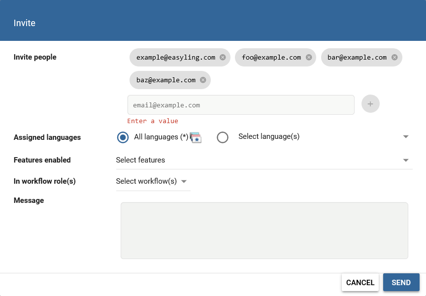 Inviting multiple users required you to enter their email addresses in a comma-separated list. Only correctly formatted comma-separated lists were accepted and if there were lots of users, the only way to review them was scrolling through the input field. I think we can all agree that this is not the best experience to be had. So, we changed it!