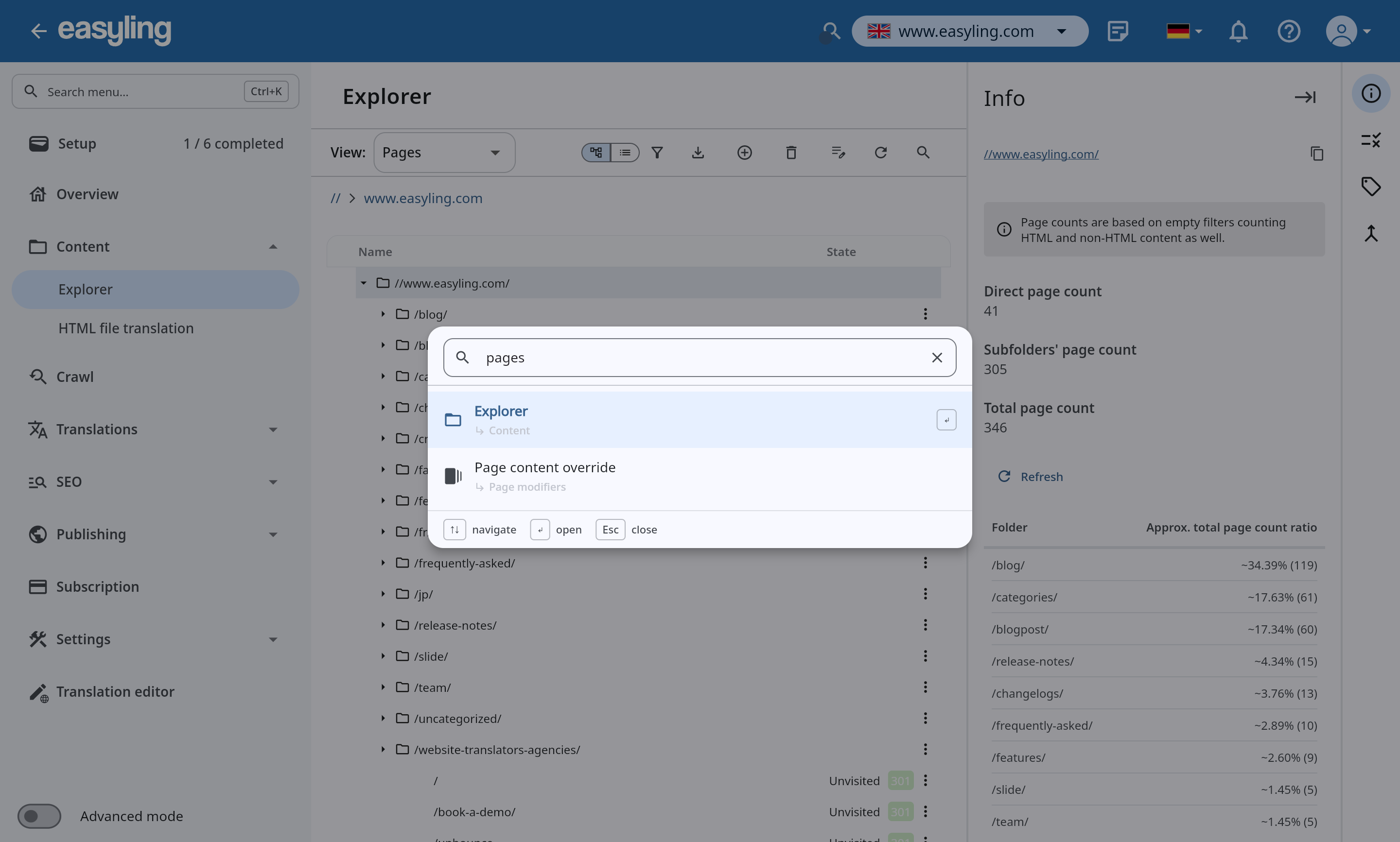 As we’re adding more and more features to the Dashboard 3.0 and making it feature complete, we noticed that sometimes we may get lost between all the menu options. To combat this, we added an option to search. You can just press Ctrl+K (or Cmd+K on a Mac) to access it and type which feature you may need. Naturally, you do not need the exact name. We did our best to add names that you may search for too. For example, I find myself searching for the Pages list fairly often and luckily its new version the Explorer is the first result.