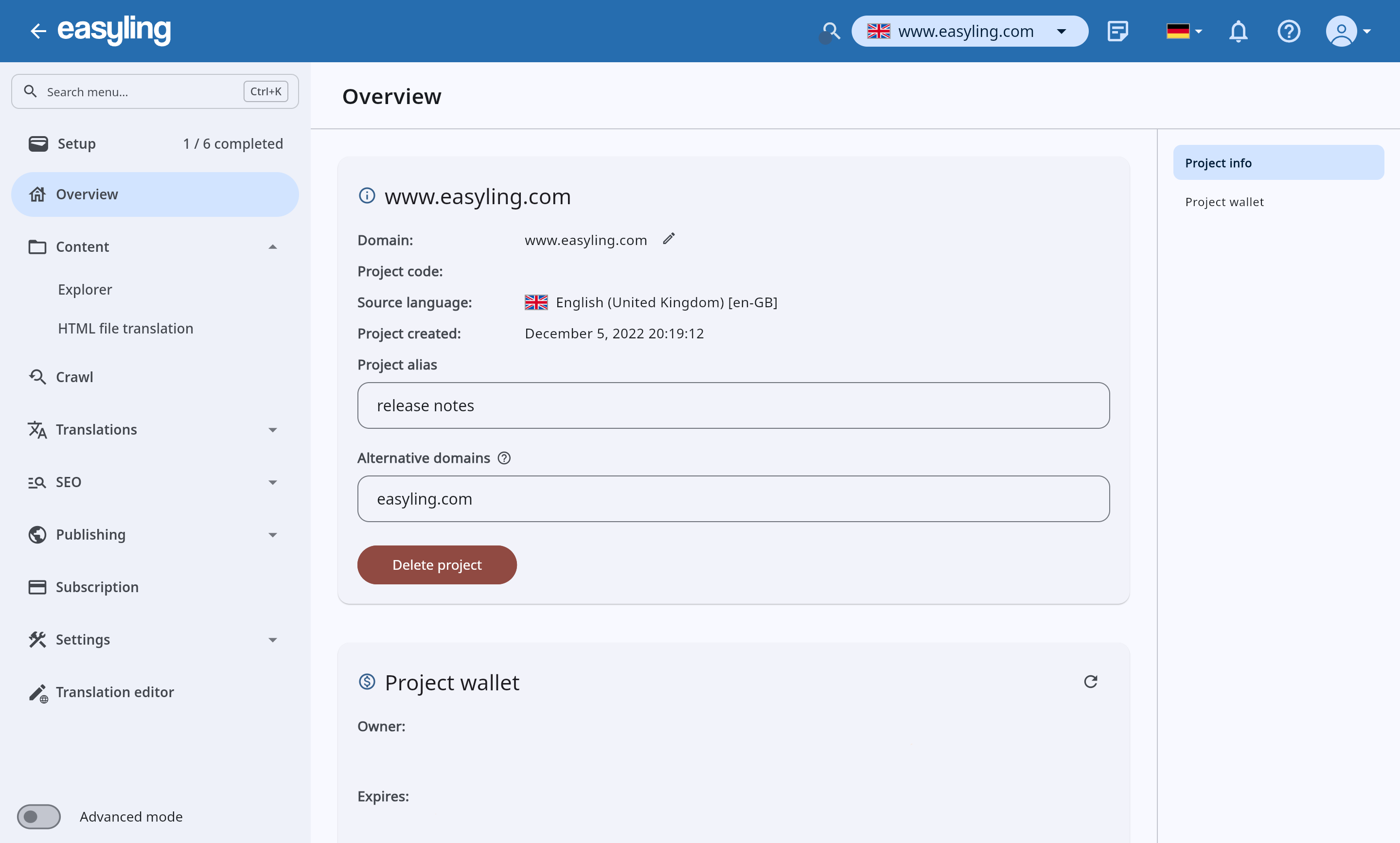 This section is the core of the Dashboard 2.0. This is where you can come to review the state of the project in one place. It’s particularly useful when you work with many projects and need a quick overview. For now, the new version only contains the most crucial bits, but we’ll continue to work on this in the future.